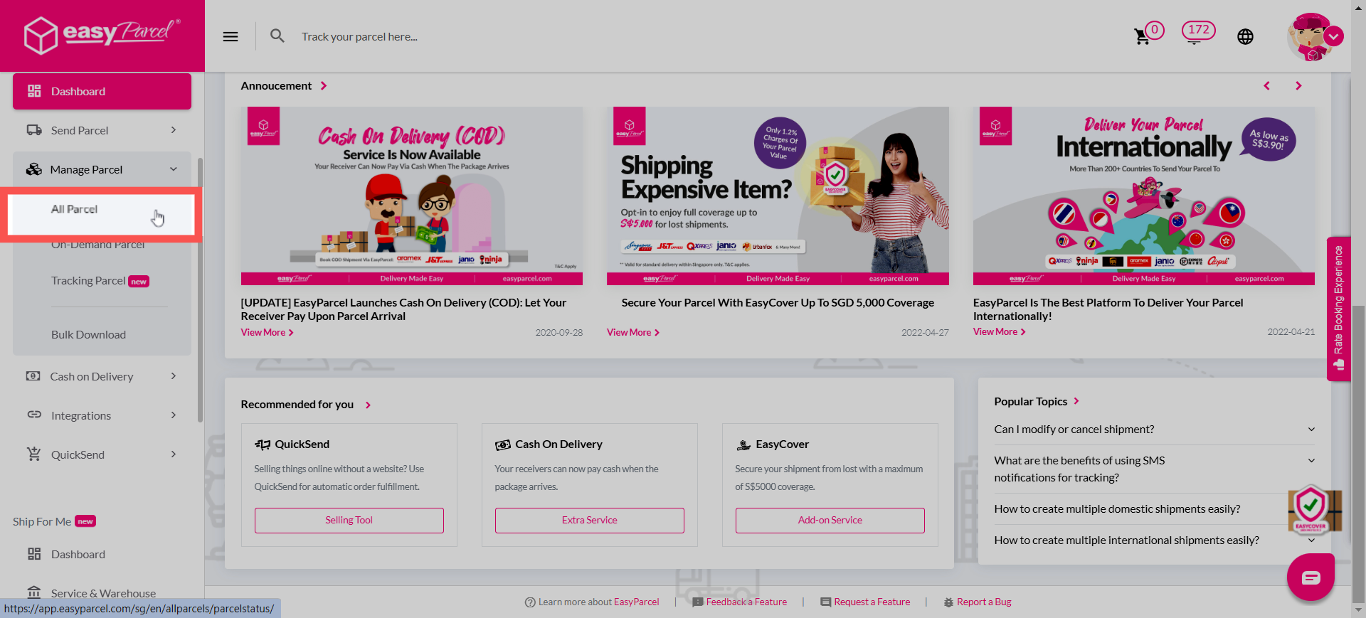 Step 1: Go to "Manage Parcel" on the sidebar and then click on "All Parcel".