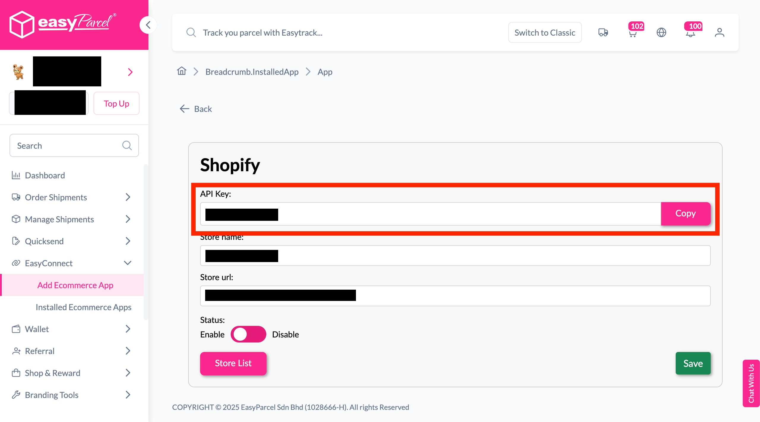 2. Start integrating - Add your store in EasyParcel account