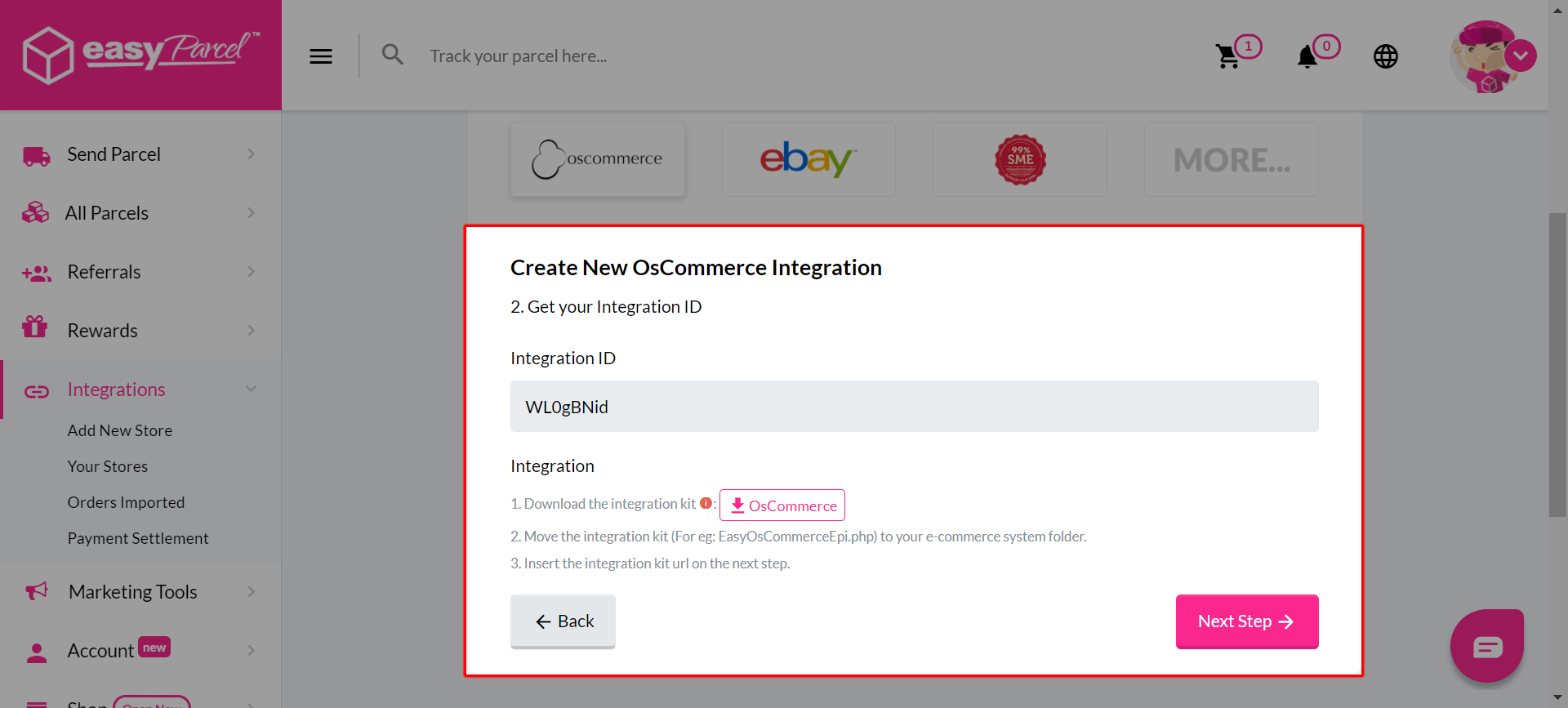 Step 4: Get your Integration ID and download the integration kit. Click "Next Step".