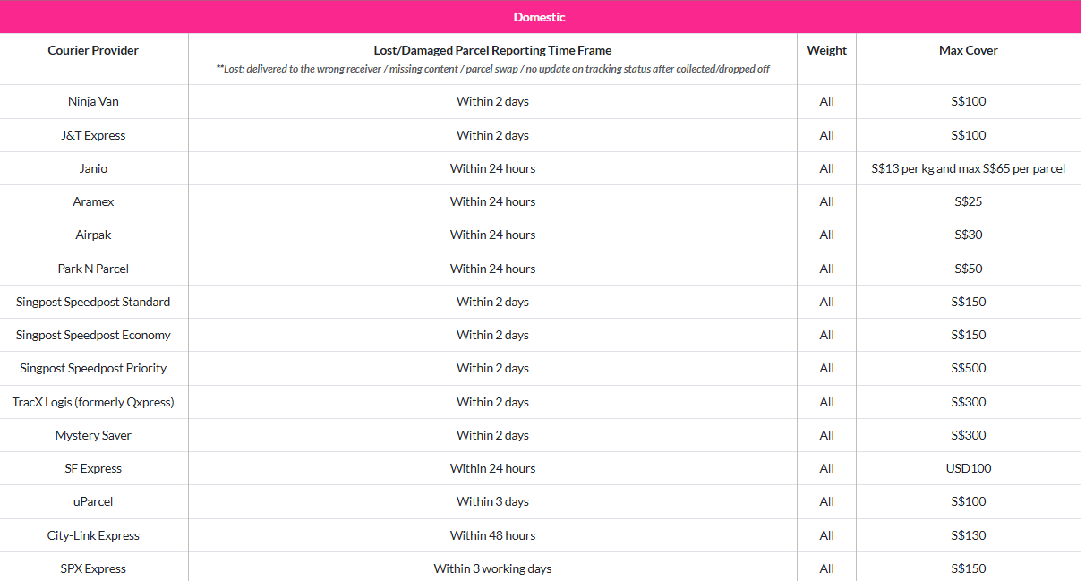 All deliveries come with basic insurance coverage provided by our individual courier providers. For compensation claims, all lost and damaged parcels have to be reported within the time frame specified by each courier company.