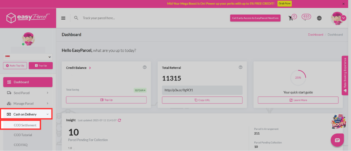 Step 1: Go to "COD Settlement" under the "Cash On Delivery" tab.