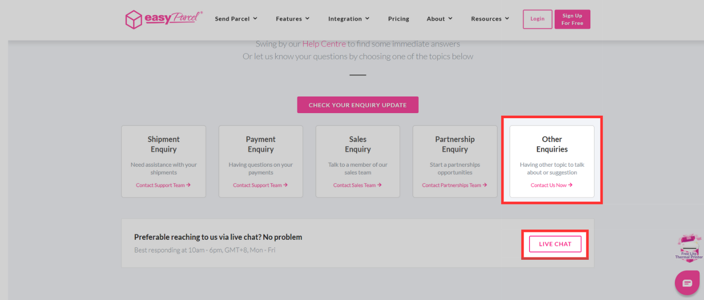 Step 2: Under it you may click on "Other Enquires" or "Live Chat" to request from our Customer Service Team. Once click it will redirect you to reach our Customer Service team.